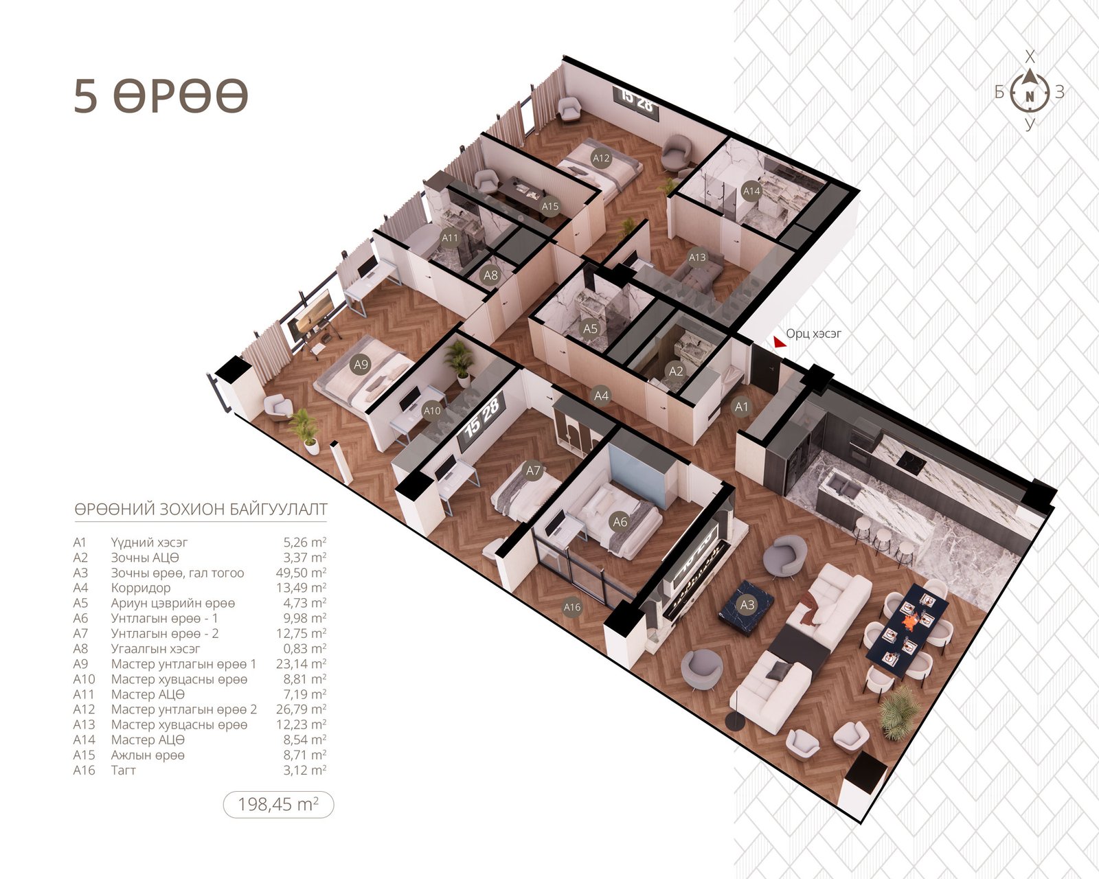Б13 Мастер хувцасны өрөө 12,50 m2